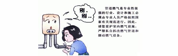 燃?xì)夤艿?、設(shè)備的安裝都是嚴(yán)格按照國(guó)家有關(guān)技術(shù)設(shè)計(jì)、安裝、檢驗(yàn)后才投入使用,以確保供、用氣設(shè)備的嚴(yán)密性及使用安全性。未經(jīng)天然氣公司專(zhuān)業(yè)人員現(xiàn)場(chǎng)勘察、整改、檢驗(yàn),用戶(hù)私自移動(dòng)管線、設(shè)施的安裝位置,其嚴(yán)密性、安全性和耐用性都無(wú)可保障。所以,用戶(hù)的用氣環(huán)境改變或需要對(duì)天然氣設(shè)施進(jìn)行改裝,請(qǐng)及時(shí)聯(lián)系天倫燃?xì)夤?374-2629282進(jìn)行設(shè)計(jì)改裝,用戶(hù)不得擅自移動(dòng)天然氣設(shè)施及擴(kuò)大用氣范圍、改變用氣性質(zhì)。
